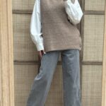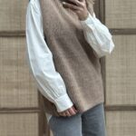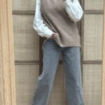 Étiquettes : 2 côtés, boutons, camel, col roulé, détails, pull, sans manche