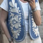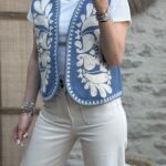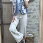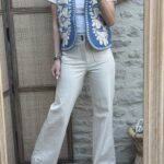 Étiquettes : broderie, écrue, Femme, jean, sans manche, veste